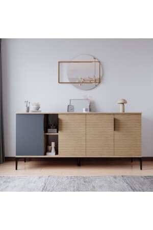 أجهزة التحكم في أسلوب الأثاث من نوع MNZ 4 أبواب ، رفوف ، 180 سم ، غرفة الطعام ، مكتب ، غرفة المعيشة وحدة (ANTHRACITE-YUNUS