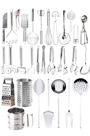 Deniz 6 Parça Paslanmaz Çelik Kevgir Kaşık Kepçe Izgara Maşa Servis Takımı Seti
