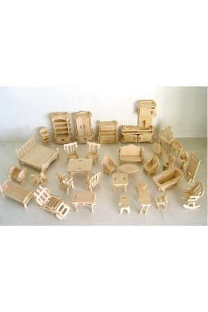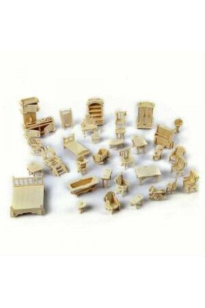 النماذج المعدنية المعدنية من طراز MNZ-MINIATURE WOODEN HOUSE ROOM ITEM MODELS 184 PICES منتج يأتي إليك في 4 لوحات