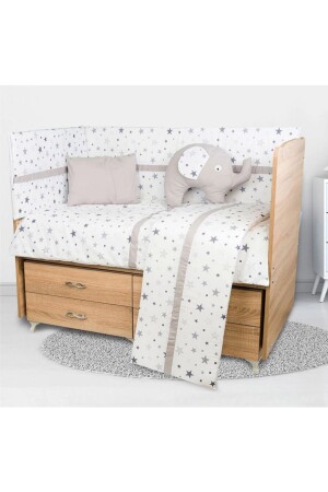 70x110 Park Beşiklere 10 Parça Bebek Uyku Seti - Kahverengi Ay Yıldız Desen (BEŞİ?K HARİ?Ç)