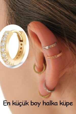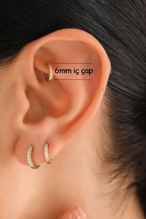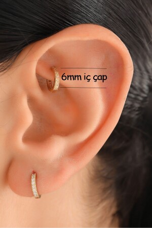 أذن واحدة من طراز MNZ (لا زوج) 14 كيراط ذهب * حجم الطفل * حجر صغيرة حلقة 6mm Huggie صغيرة أذن واحدة