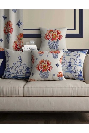 Afrika Temalı Kırmızı Sarı Renklerde Hediyelik 4'lü Dijital Baskılı Koltuk Kırlent Kılıfları