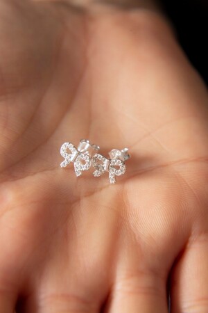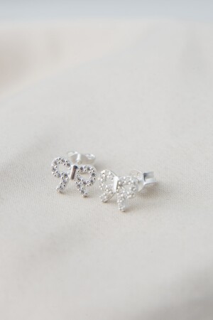 Sade Sallanan İkili Yıldız Beyaz Gümüş Küpe