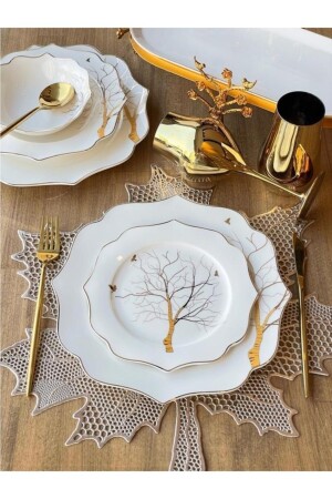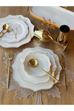 MNZ-1st Quality Bone Porcelain Dinnerware 24 Piece Set Content: 6 لوحات خدمة، 6 لوحات عشاء، 6 لوحات كعك، 6 كؤوس حساء*فوكس-