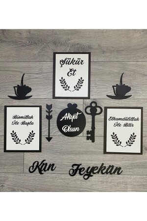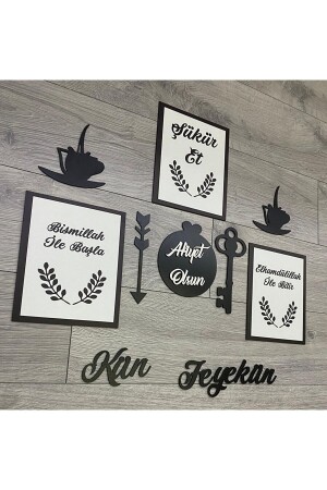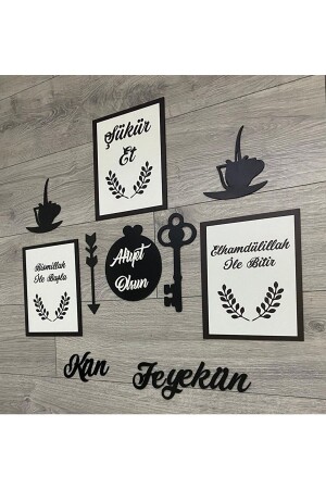 3d Sabret Şükret Dua Et Allah Muhammed Vav 6'lı Tablo Set (20*13) Gold / Beyaz Bilazertasarım
