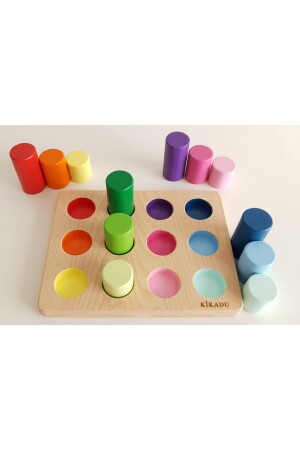 أسطوانات الطاولة المتناسبة MNZ-Montessori والبطاقة التعليمية والحقيبة والبوب الخشبي الطبيعي WT-28