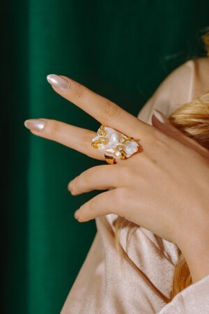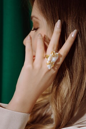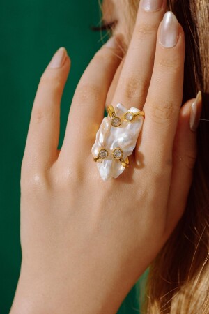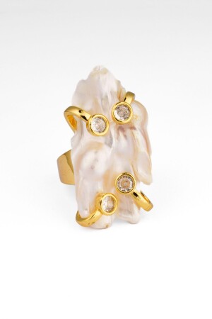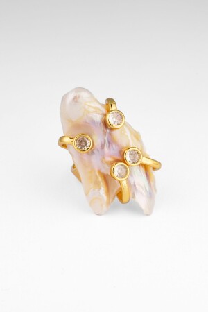 أسلوب باروك من نوع MNZ-Hera Perl Ring Stone مزين بالذهب