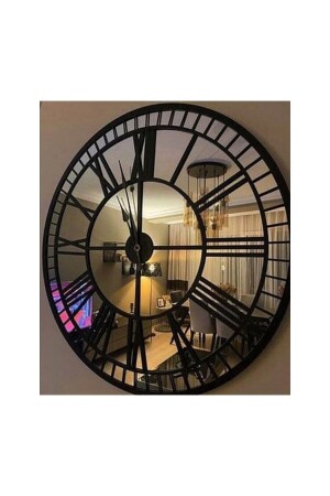 أسلوب رستيكي من النمط المزخرف ساعة الجدار الموسيقية الفضية - السوداء الحفرة 50 سم Rstkrm50syhgms