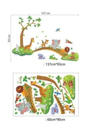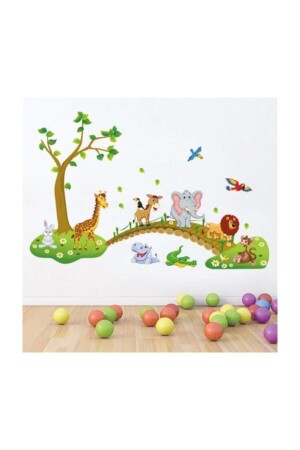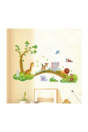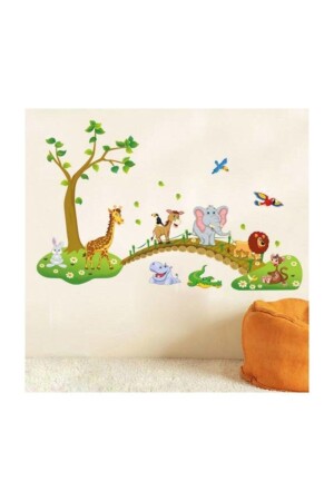 أطفال وطفولة في غرفة الجدار الحيوانات الجميلة على الجسر الأسد الفيل العجيرة الديكور الزينة الملصق