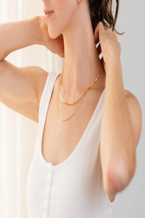 الاتجاه للمرأة من MNZ الذهب السلسلة الإيطالية 2 قطع مزيجة عنق الفولاذ