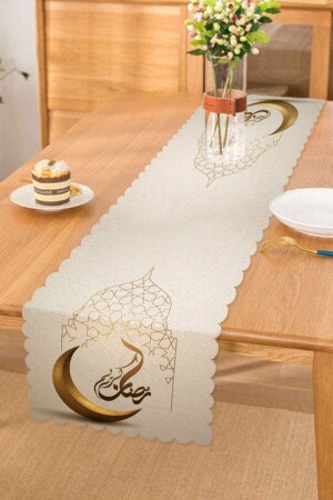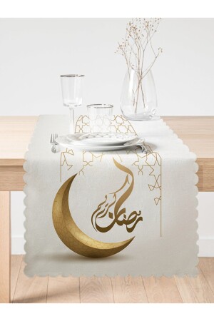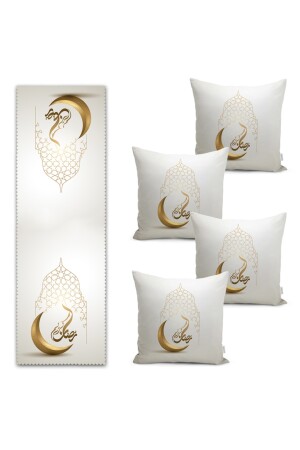 Iyi Bayramlar Arapça Motifli Dijital Baskılı Runner & Kırlent Kılıfı Seti