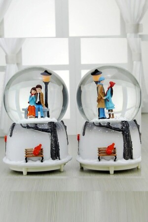 Aşk Seninle Güzel Sevgili Aşıklar Temalı Kar Küresi Müzikli Işıklı Sevgiliye Hediye