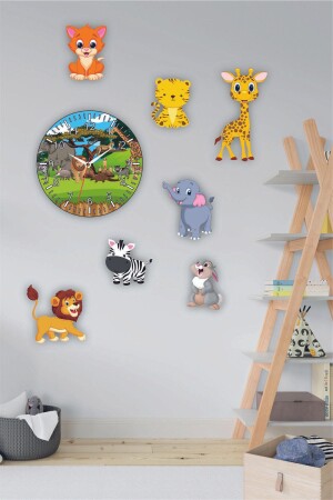 الحيوانات - الحيوانات الرائعة الأطفال / غرفة الأطفال 8 قطعة ساعة الجدار