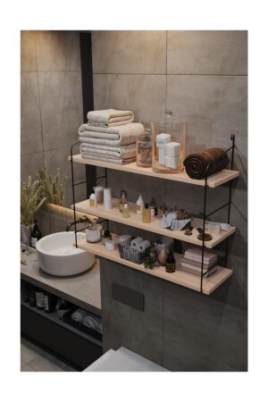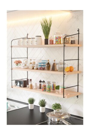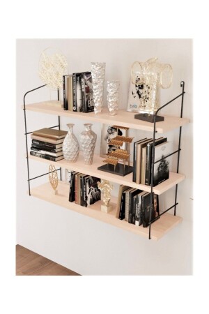 الخشب الطبيعي الثابت MNZ الحجم الكبير 3 طبقات رف الجدار، رف الكتب، Terek BinoGold16