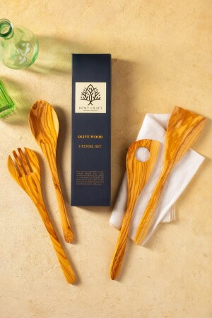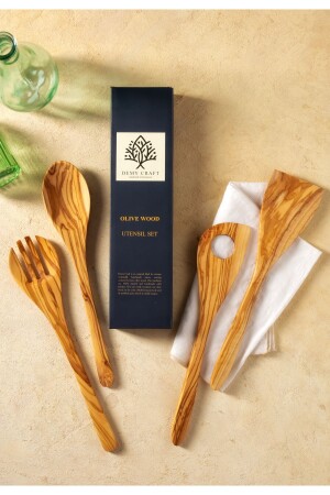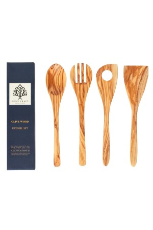 الخشب من الزيتون من نوع MNZ 30 سم 4 قطعة مطبخ خشبي مجموعة، ملعقة خشبية، شفرق، سباتولا صنع يدوي DCOW4PCS