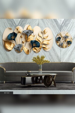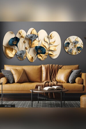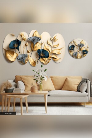 الزهور الزرقاء والذهبية المتنوعة مع الفروع 5 قطع MDF ساعة طاولة مجموعة