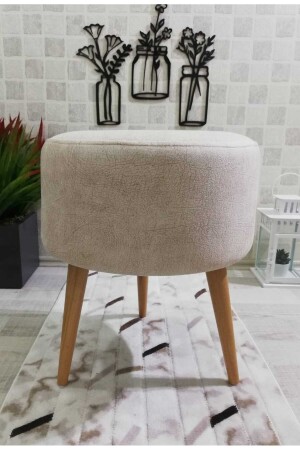 MNZ-- تدي فابيك ديكوراتيف بوف مقعد مقعد تجميل مع ساقي خشبية