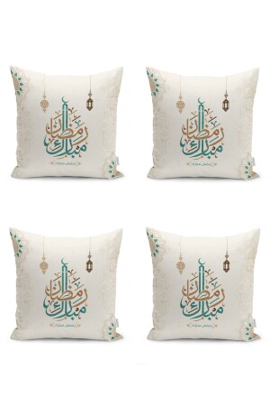 MNZ-Bohemian Design Flat Art Boho Style مجموعة من 4 أغطية مسادة من طراز الرموز الرقمية المطبوعة في ألوان البني والكريم