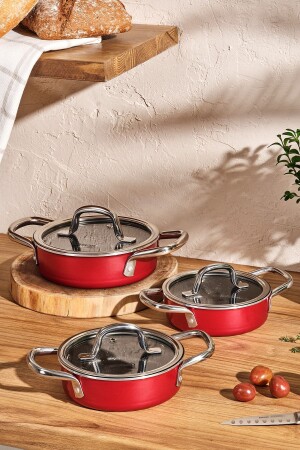 MNZ-Emsan Master Class 6 Piece Saucepan Set Set Set أحمر المجموعة محتوياتها 14 سم صالة وعاء 16 سم صالة وعاء 18 سم صالة مواد: غطاء غ