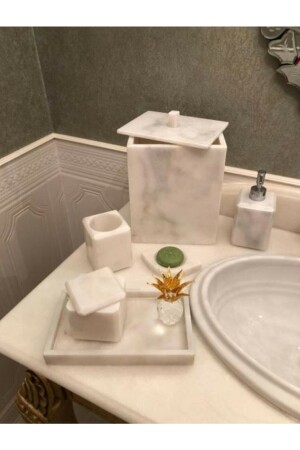 المربور الأبيض المزخرف MNZ المربور المربر الفضي التفصيلي 7 قطع حمام مجموعة WHITESQUAREILVERBANYO7