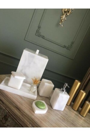 5 Parça Lenox Akrilik Bambu Banyo Seti Beyaz