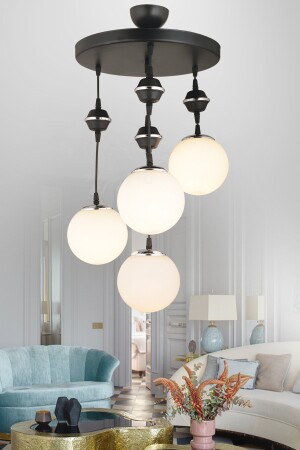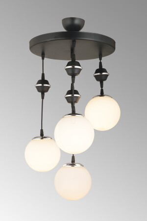 Pare Model Modern Spor Siyah 4'lu Glop Füme Camlı Avize