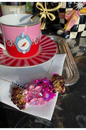 تم إعداده عن طريق خياطه واحداً تلو الآخر مع حجارة بلورية خاصة. إنه منتج تصميم.