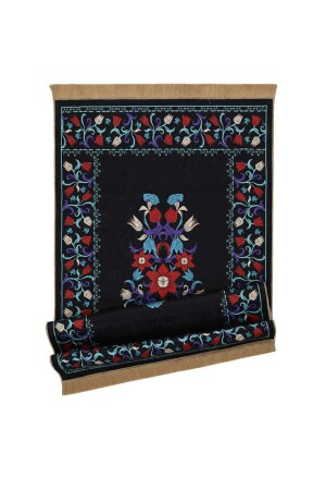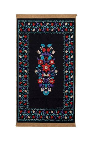 Dekoratif Dijital Baskılı Siyah Kaymaz Taban Seccade Namazlık 75 x 120