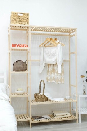 الموضة المفتوحة من قِبل MNZ 148x96x35cm الملابس الخشبية المرفقة المعلقة
