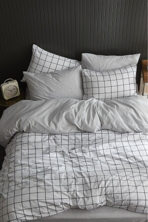 النمط الجيوميتري MNZ غطاء الواحد المطبخ مجموعة البيضاء Plaid طريقتين استخدام الأدلة السرير اللون الرمادي العادي NTTEKWEYZEKOSE