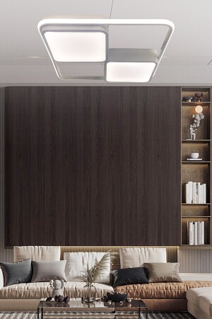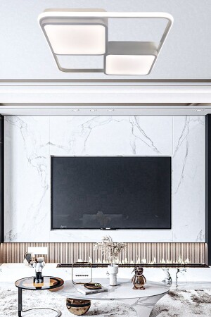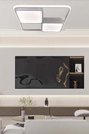 النموذج الأبيض من النموذج MNZ-Square LED Candlelier، Candlelier الحديثة السقف مع 3 ألوان الإضاءة والمرموز عن بعد، غرفة المعيش