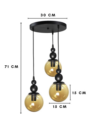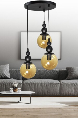 النموذج من مصباح العجلة من 3 قطع من MNZ-Venus الأسود / العسل - الزجاج الأصلي - غرفة المعيشة - القاعة - غرفة النوم الشنادل الحديث VN3