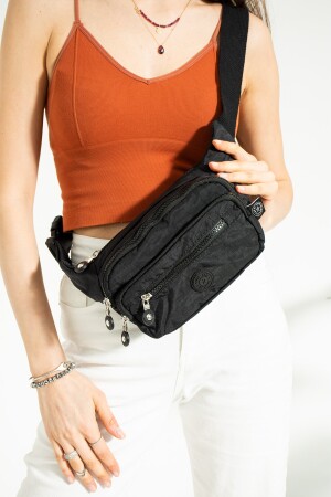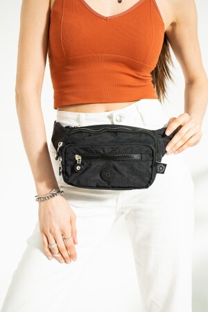 Unisex Siyah Keten Kumaş Telefon Bölmeli Çapraz Askılı Omuz Ve Bel Çantası Günlük Çanta