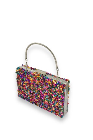 Simli Altın Renk Taşlı Işlemeli Kadın Abiye Portföy Clutch Çanta Indirimli
