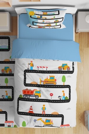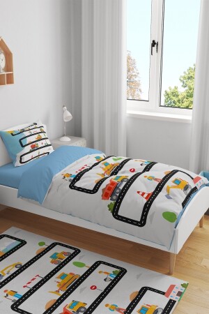 Rally Yarış Arabalı Desenli Mavi Çarşaflı 2 Yastık Kılıflı -Ranforce Tek Kişilik Nevresim Takımı
