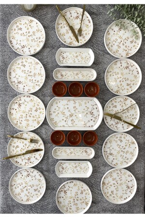 مجموعة إفطار من طراز MNZ-Gold Eliz 23 Piece Set لـ 12 شخص: - تتكون من 12 طبق صلصة 20 سم - 6 أكواب صلصة من الطلاء - 2 ز