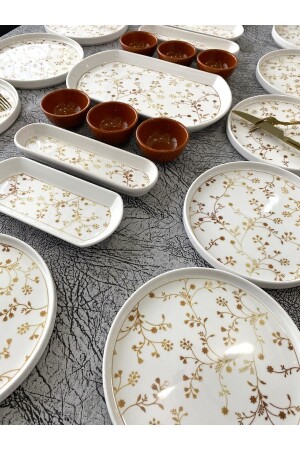 64 Parça 12 Kişilik Gold Modern Krem Kahvaltı Takımı