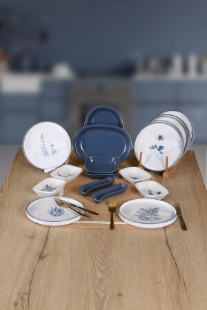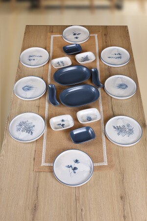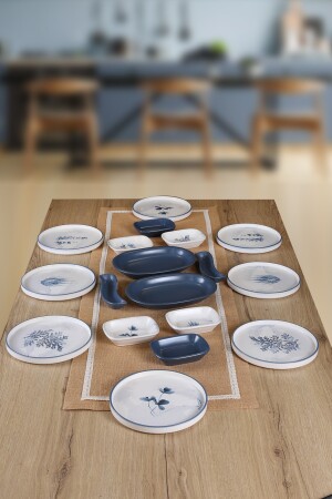 Çiğdem Blue Model 12 Kişilik 21 Parça Kahvaltı Takımı Kahvaltı Seti[ Mavi 12]
