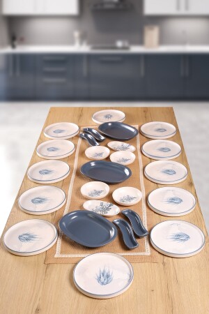 Çiğdem Blue Model 12 Kişilik 21 Parça Kahvaltı Takımı Kahvaltı Seti[ Mavi 12]