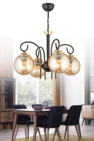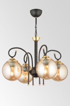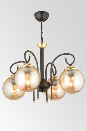 Pare Model Modern Spor Siyah 4'lu Glop Füme Camlı Avize