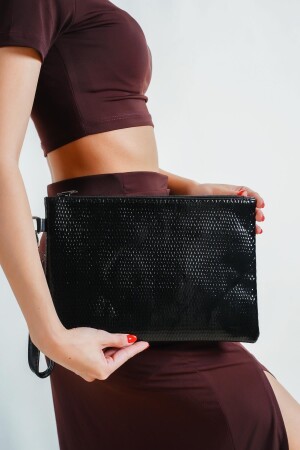 برنامج "MNZ-Capone" براءة اختراع "Leather Snake" نمط "باريس" كيس المزج للسيدات الأسود 356-Z003-RPT-01-0001