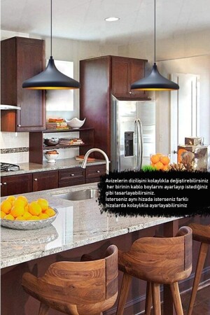 3'lü Siyah Modern Sarkıt Led Avize Beyaz Işık Salon Mutfak Oda Hol Ledli Avize