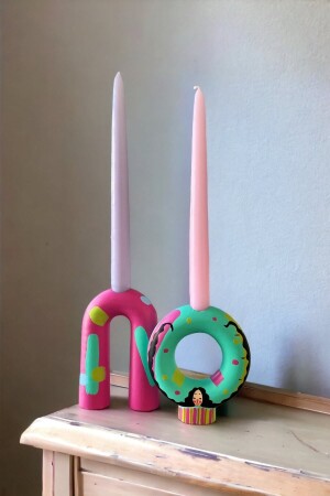 حامل شمعة من لون المرجان MNZ-Parla مع شموع مسحوق اللؤلؤ