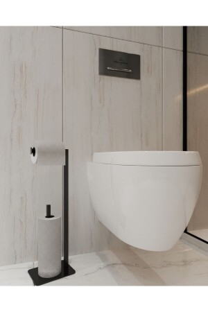 Wc Banyo Tuvalet Ayaklı Kağıtlık Yedekli Tuvalet Kağıtlığı Mat Siyah WC siyah kağıtlık