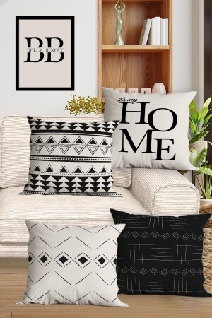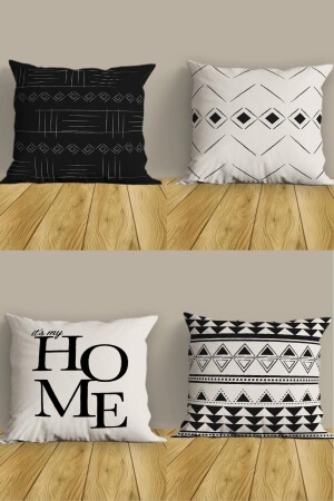 تصميم أسود أبيض MNZ مزدوج الجانب المطبوع مجموعة ديكوراتية من 4 أوقات وسادة الأريكة و غطاءات السكينة