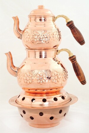 مجموعة من النحاس العثماني المطبخ النحاسي. الغرفة السفلى تحتوي على 2 لتر من الماء والكوب تحتوي على 1 لتر من الماء. بداخلها هو بيوتير.