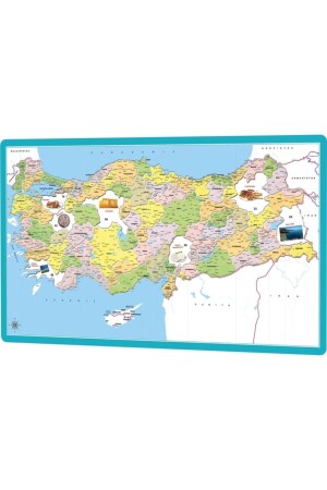 تُظهر خريطة تركيا تحت كل مقاطعة، كما توجد صور معلومية مثل أشهر الأطعمة والقطع الأثرية التاريخية والجمال الطبيعي في تلك المقاطعة.
