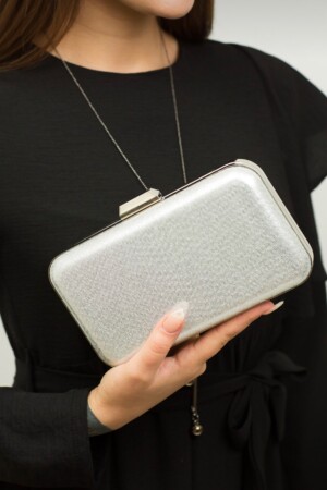 Kadın Yuvarlak Gümüş Taşlı Bilezik Aksesuarlı Abiye Clutch Portföy Çantası