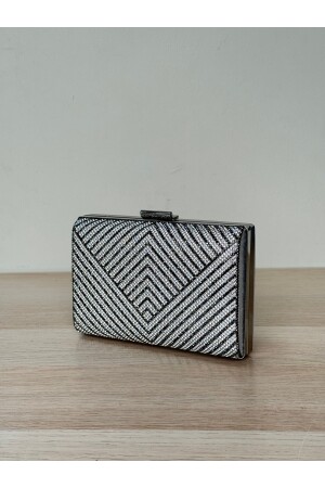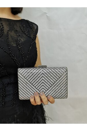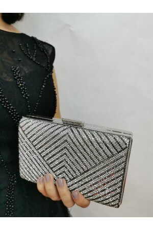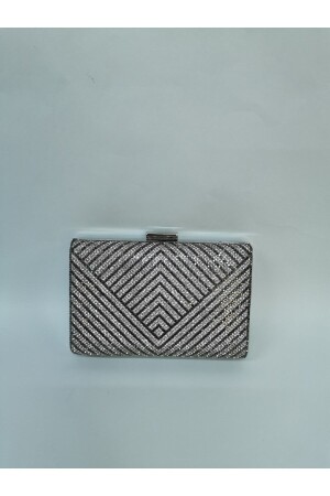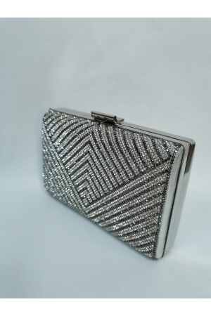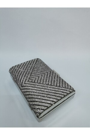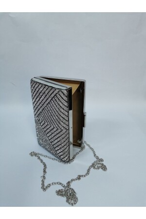 Kadın Yuvarlak Gümüş Taşlı Bilezik Aksesuarlı Abiye Clutch Portföy Çantası