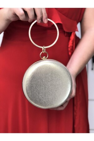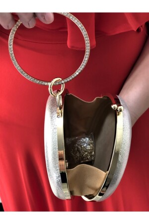 Kadın Yuvarlak Gümüş Taşlı Bilezik Aksesuarlı Abiye Clutch Portföy Çantası